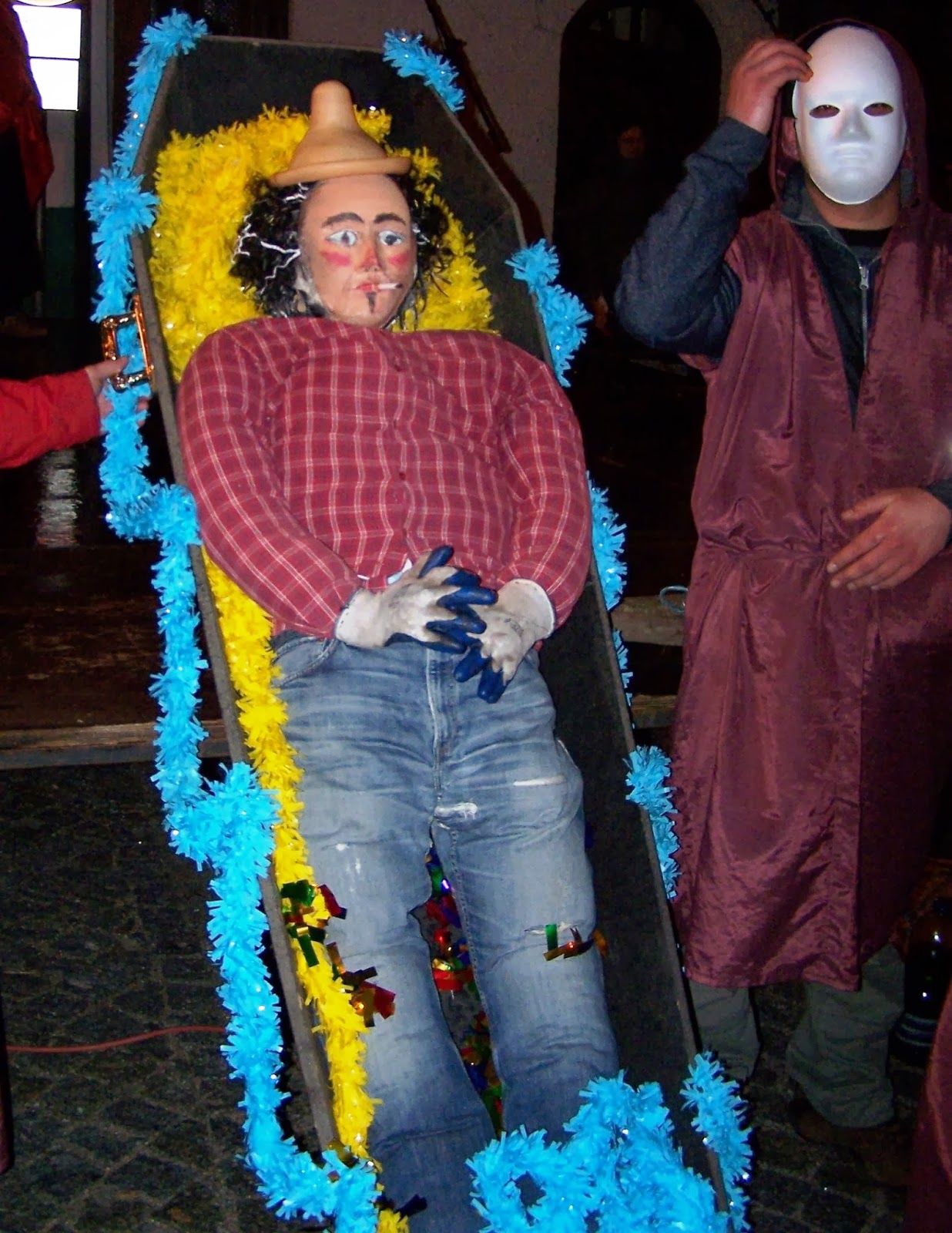 Aqui está o Entrudo, já depois de ouvir a sentença. Fogueira com ele!
