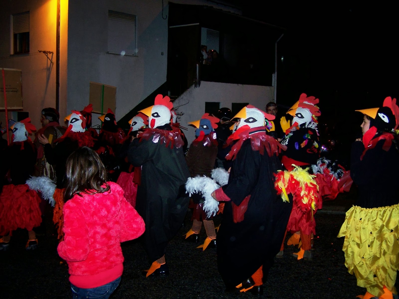 Neste desfile estiveram presentes algumas das colectividades que também animaram o Julgamento e Morte do Galo. Aqui umas galinhas muito tristes pela morte do galo, penso que da A.C.R. da Sequeira.