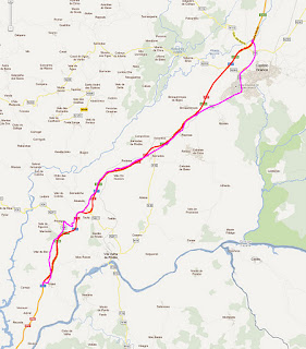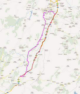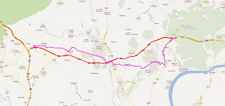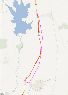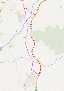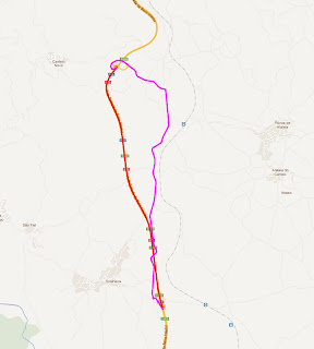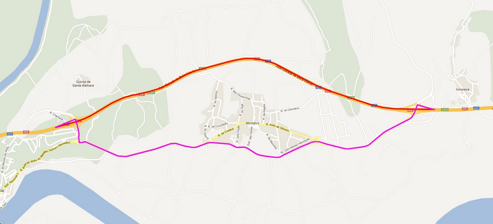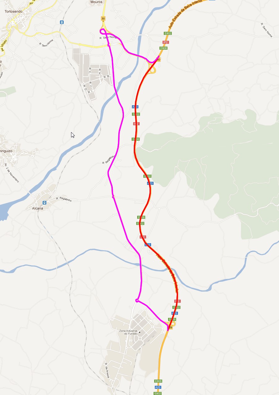 Nos mapas a linha vermelha representa a A25. A linha roxa representa a alternativa.