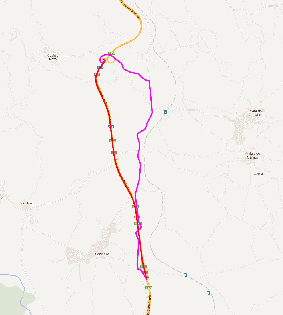 Fiz a análise no sentido Aveiro-Guarda. No sentido inverso há algumas alterações, porque os nós nem sempre são paralelos.